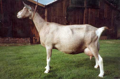 Belle was a third generation full champion, the first and only British Toggenburg to achieve this status. She was awarded her championship as a second kidder when yielding in excess of 7 kilos per day with butterfats in the region of 4.5%. | ||||||||||||||||||||||||||||||||||||||||